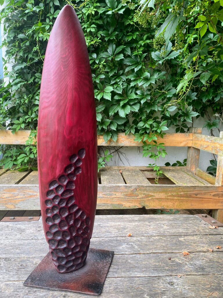 La créativité réside dans sa vision et dans ses mains. Le bois, cette matière brute et authentique, exerce sur lui une fascination particulière. Lorsqu’il travaille avec lui, les frontières s’estompent et le temps devient fécond : il puise son inspiration dans l’essence même de la nature, dans le grain et les cernes de croissance du bois.