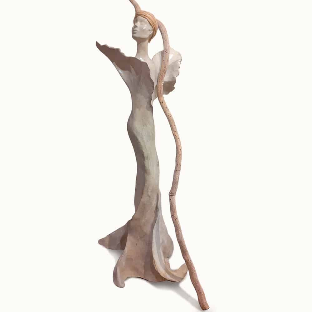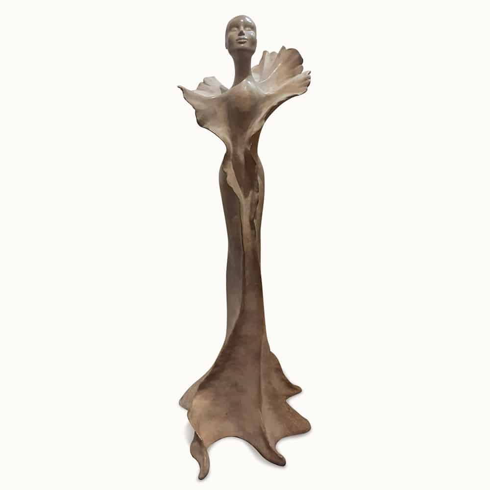 Depuis longtemps, les visages féminins étaient une source d’inspiration, mais mon lien toujours plus profond avec la nature a enfin trouvé son expression dans mes œuvres. Les nombreuses heures passées dans les forêts, les montagnes, au bord des lacs et des rivières ont fait naître des femmes végétales — amazones solitaires, rêveuses, guerrières, contemplatives ou êtres célestes — mais toutes fermement ancrées dans la terre dont elles semblent surgir.